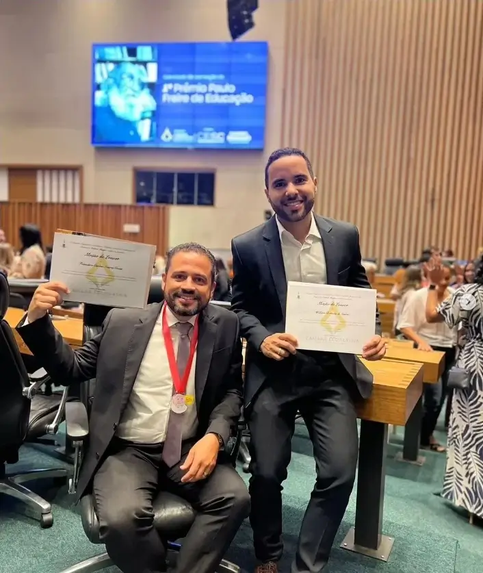 Prazer, somos o Professor Carlinhos Costa e o Professor William Dornela, dois educadores apaixonados por transformar vidas através do ensino.
