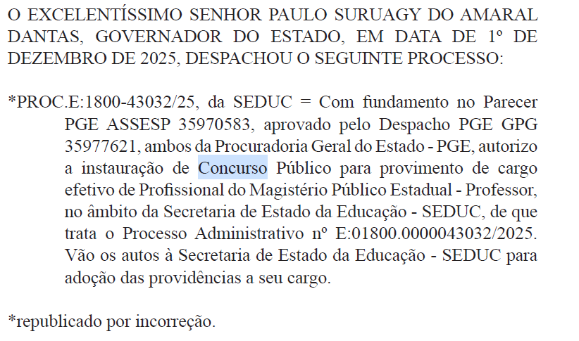 14 de novembro de 2025: PGE autorizou o avanço para o concurso Seduc AL.